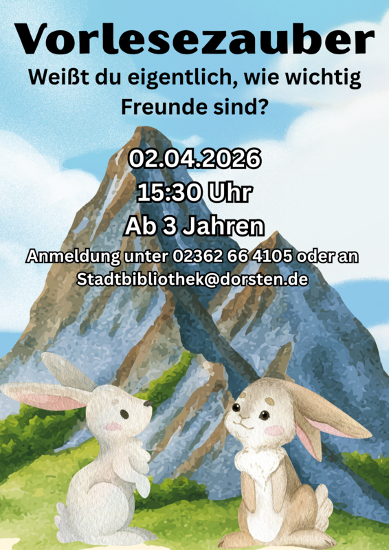 Anmeldungen zu den jeweiligen Veranstaltungen werden unter stadtbibliothek@dorsten.de oder 02362 66 4105 entgegengenommen.