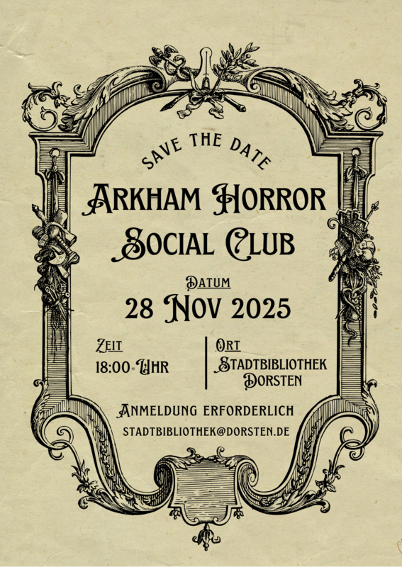 Einmal im Jahr beschäftigen wir uns spielerisch etwas intensiver mit den Werken von H.P. Lovecraft. Waren es in den letzten 3 Jahren die Arkham Nights, so veranstalten wir dieses Jahr einen schaurig-schönen Abend im Arkham Horror Social Club.